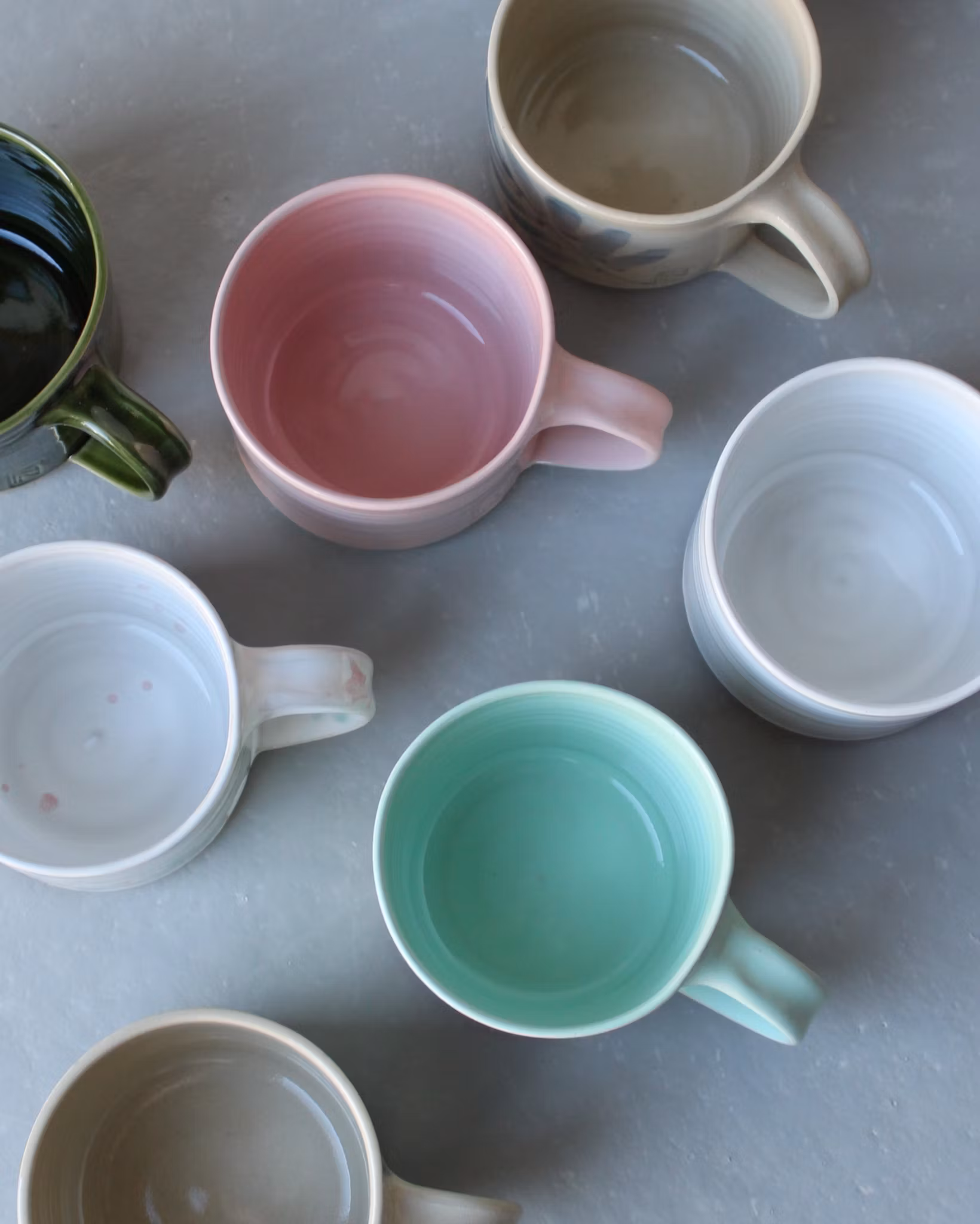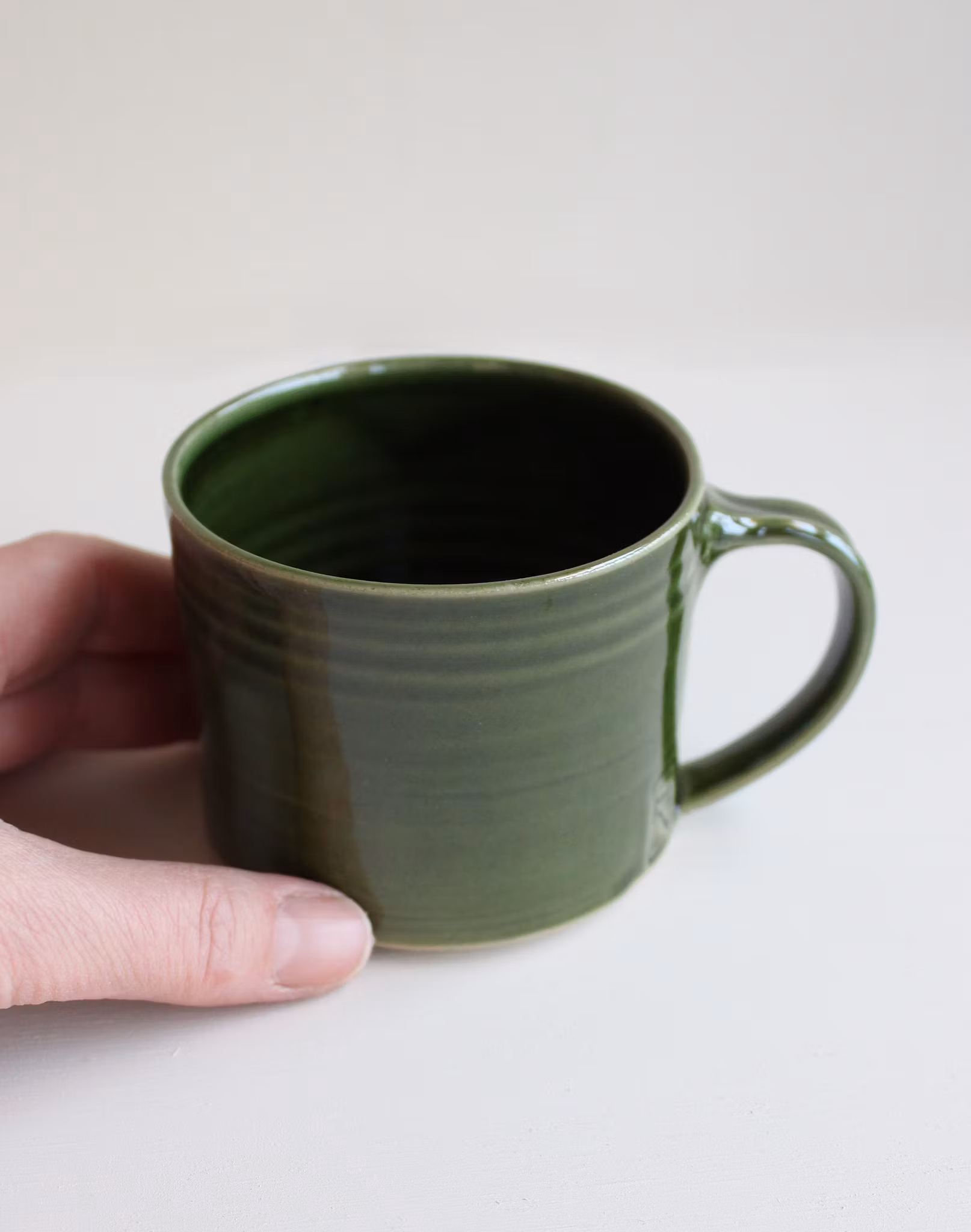 Handdrejad kopp i stengodslera, rak form med hänkel. Liten och nätt i form och vikt men rymmer ändå cirka 2 dl kaffe eller annan dryck.